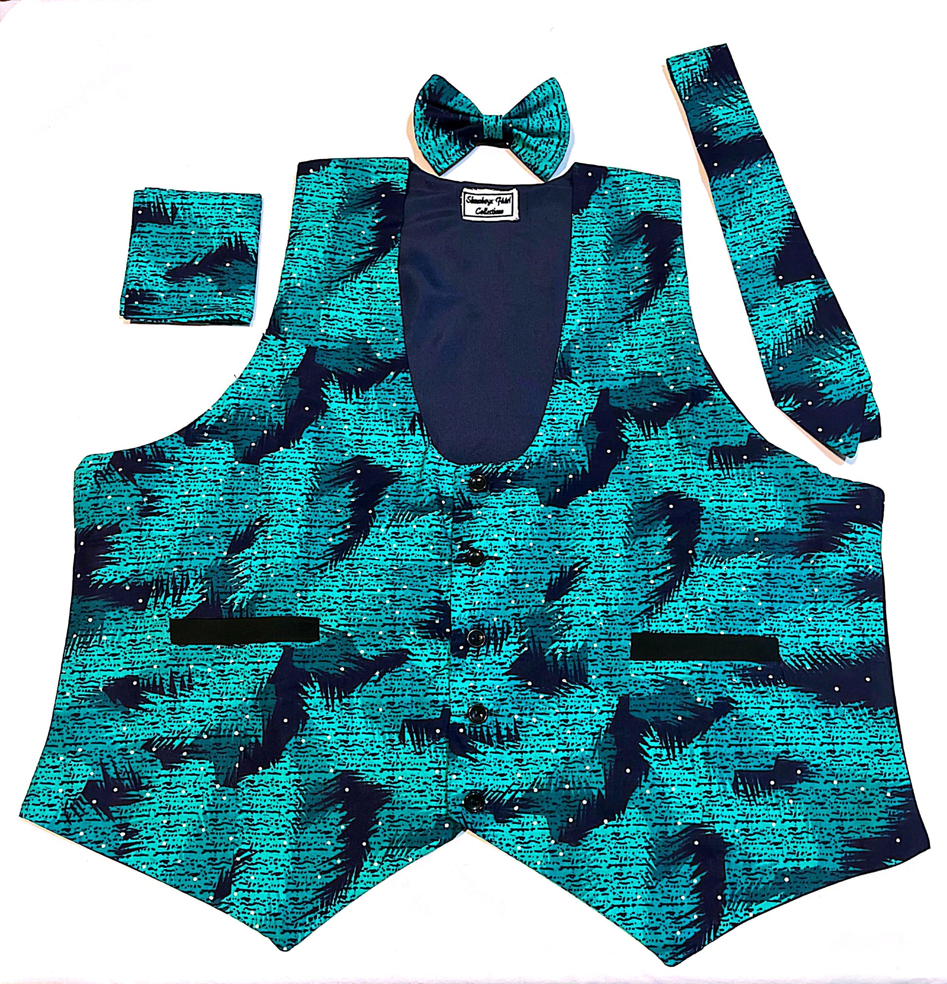 Elevate your wardrobe with our Ankara 3-piece vest set, crafted for the modern gentleman who appreciates culture, comfort, and style. This unique set includes a tailored Ankara vest, a matching Ankara pocket square, and an exquisite Ankara tie, perfect for adding a touch of vibrant tradition to your everyday look or special occasion attire.